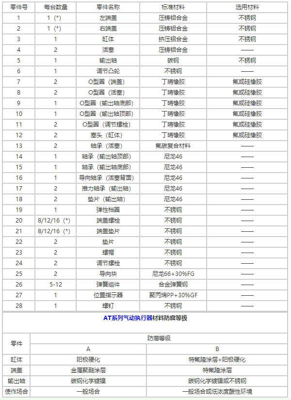 AT系列氣動執行器缸體為擠壓的優質鋁合金缸體,經精密加工的內孔和外部表面進行硬質陽極氧化處理(特殊情況下陽極氧化+特氟隆涂層),使用壽命更長。