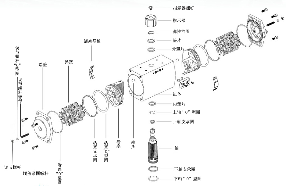 調節:活塞在兩端位置有±5°的調節范圍,即:0°~90°±5°(活塞標準裝配)或者0°±5°~90°(活塞反向裝配)。