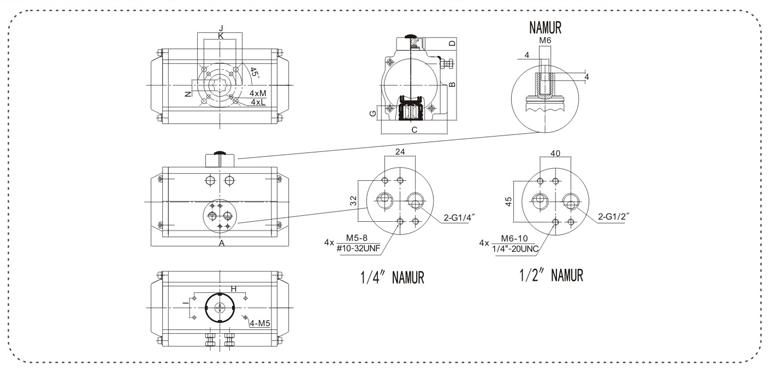 執行器和閥門的接口符合ISO5211,DIN3337;執行器和控制閥(電磁閥等)的接口符合 NAMUR;執行器和信號單元(限位開關,定位器)的接囗符合 NAMUR;